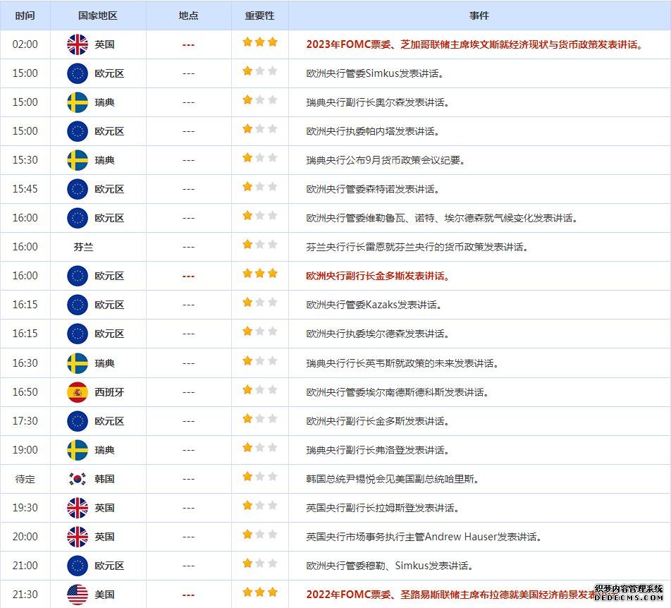 投资者一直在密切关注美联储官员有关货币政策路径的发言,亚特兰大联储主席博斯蒂克周三表示支持在11月再次加息75个基点。