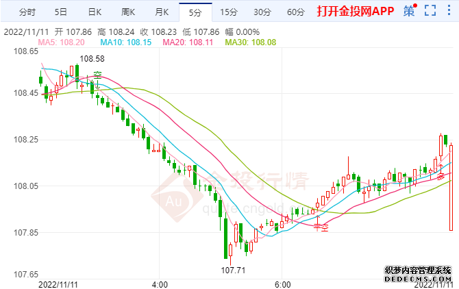 4.在数据显示美国10月通胀缓和幅度大于预期后,美元应声跳水。总体通胀率从9月份的8.2%下降到7.7%,而核心通胀率从6.6%下降到6.3%。AvaTrade分析师Naeem Aslambioashi表示,美联储将继续加息,但较低的通胀水平意味着没有必要如此激进,因此加息的步伐将会放缓。数据公布后外汇分析,美元指数从之前的110.703跌至近两个月低点,最低至108.59。欧元兑美元从0.9960升至1.0159的近两个月高点。